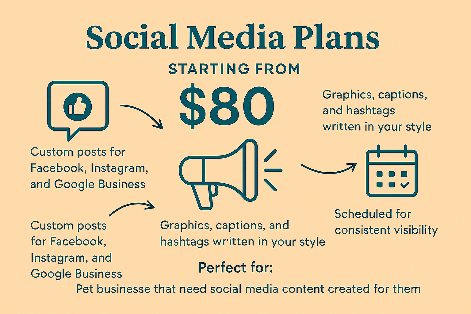 Every pet business is unique, and your marketing plan should be too. That’s why we’ve created a few ready-made packages designed to make things simple and affordable, whether you’re just starting out or ready to take your business to the next level.